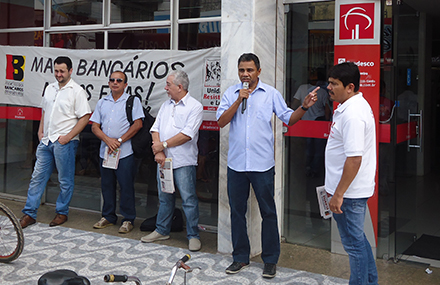 Na quarta-feira (06/08), o Sindicato realizou um protesto em frente ao Bradesco Centro cobrando o fim das demissões imotivadas e das demais práticas abusivas. Se nenhuma providência for tomada, o SEEB-MA vai denunciar o caso aos órgãos competentes e paralisará a agência por tempo indeterminado.