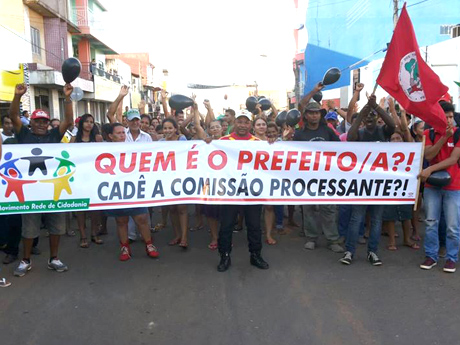 “Exigimos moralidade, legalidade, transparência nas ações públicas” , “O povo tem poder. Quem ama Açailândia vem pra rua”, “Pela moralidade político-administrativa de Açailândia”, “E os 6 processos de Improbidade, quando chegarão ao fim?”, “Quem é o prefeito(a)? Cadê a Comissão Processante?”. Essas frases marcaram o ato que reuniu mais de 1.200 de pessoas insatisfeitas com a atual situação agravada pelo quadro caótico nas políticas públicas afetando toda a população do município que se reflete negativamente na infra-estrutura, na saúde, na educação, na moradia, no transporte público, na relação institucional desrespeitosa do poder executivo com as promotorias e a Defensoria Pública, outros.