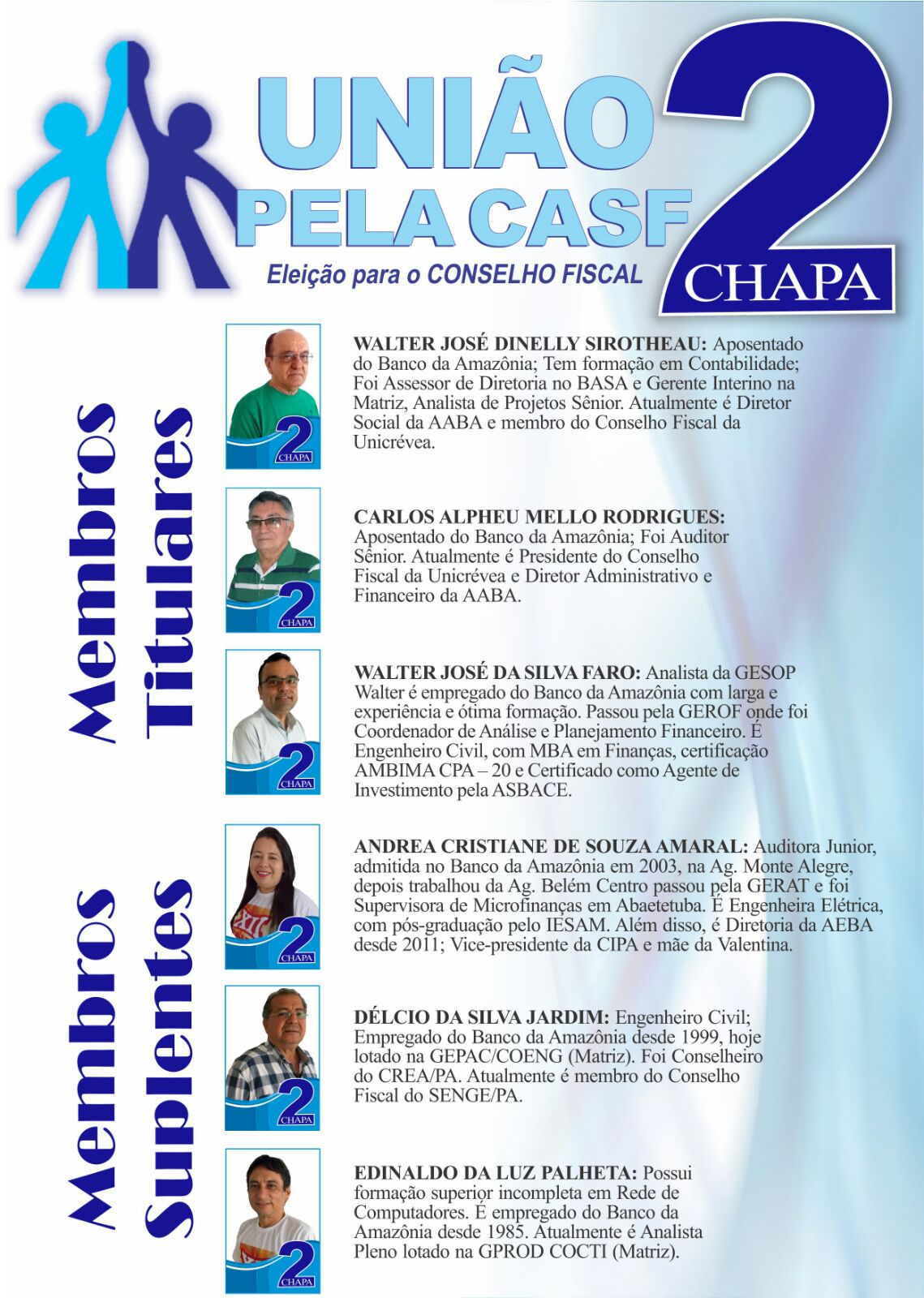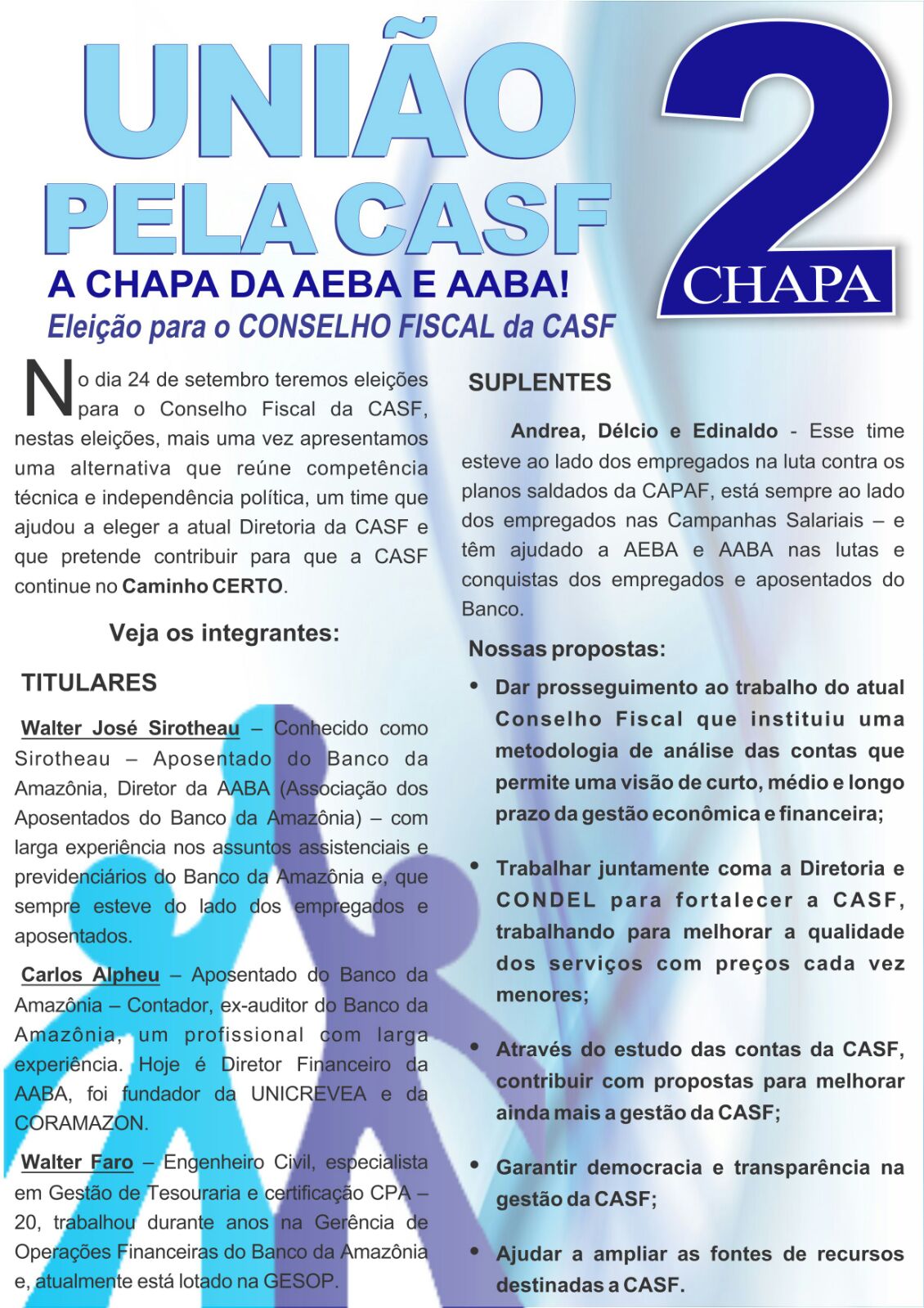 Siga todas as instruções contidas no envelope enviado pela Casf à sua residência e VOTE CHAPA 2!