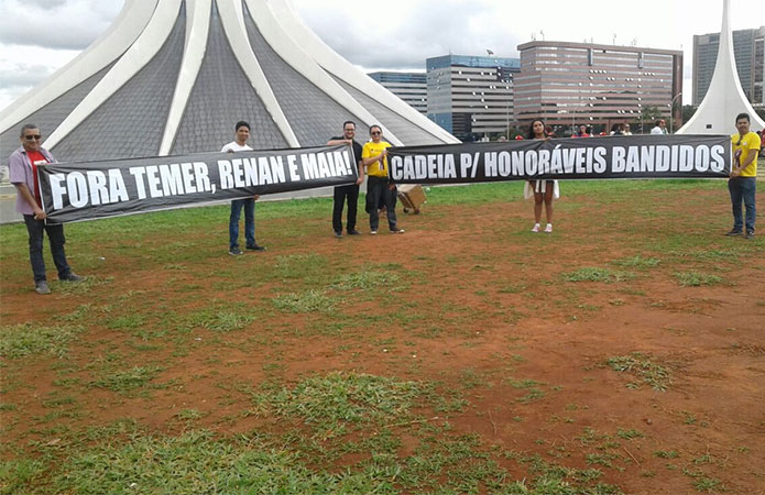 Munidos de faixas, os diretores do SEEB-MA pediram, ainda, a saída de Michel Temer, Renan Calheiros e Rodrigo Maia, alvos de uma série de denúncias de corrupção, dentre outros crimes.
