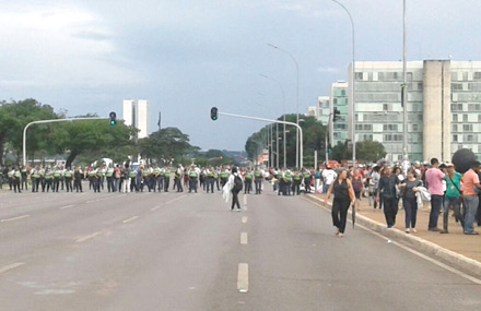 Logo em seguida, sem nenhum motivo, a PM desencadeou uma brutal repressão contra os manifestantes. Foram centenas de bombas de gás, balas de borracha e jatos de spray de pimenta. A tropa de choque avançou por diversas vezes sobre os manifestantes assim com a cavalaria, empurrando os manifestantes para a rodoviária do Plano Piloto, depois para o Setor Bancário Sul e Setor Comercial Sul, os locais mais movimentados do centro de Brasília, no horário de pico.