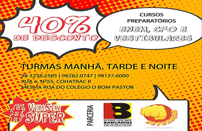 O Sindicato dos Bancários do Maranhão (SEEB-MA) firmou convênio com o Curso Superação, que oferece preparatórios para o Enem, CFO e vestibulares.