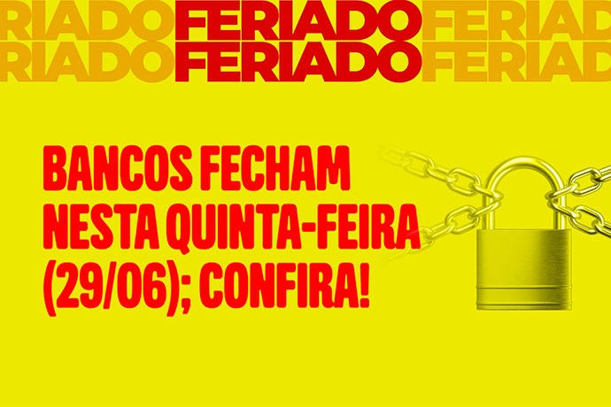 O Sindicato dos Bancários do Maranhão (SEEB-MA) informa que em razão do feriado municipal de São Pedro, os bancos não funcionarão nesta quinta-feira (29/06), em São Luís e em alguns municípios do Estado.