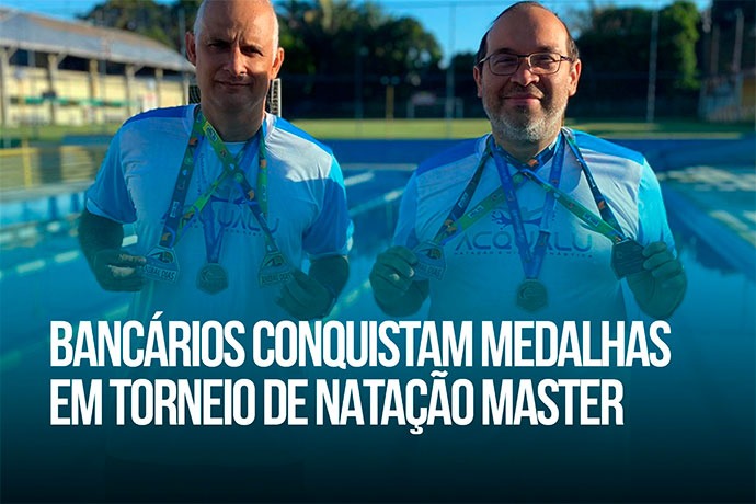 Em torneio organizado pela Associação Maranhense Masters de Natação (AMMN), destaque para os bancários Rogério Correa Lemos (Banco da Amazônia) e Eduardo Câmara Azevedo (Banco do Nordeste), que conquistaram três medalhas cada um, além de contribuir para que a Escola alcançasse a segunda colocação geral daquela etapa.