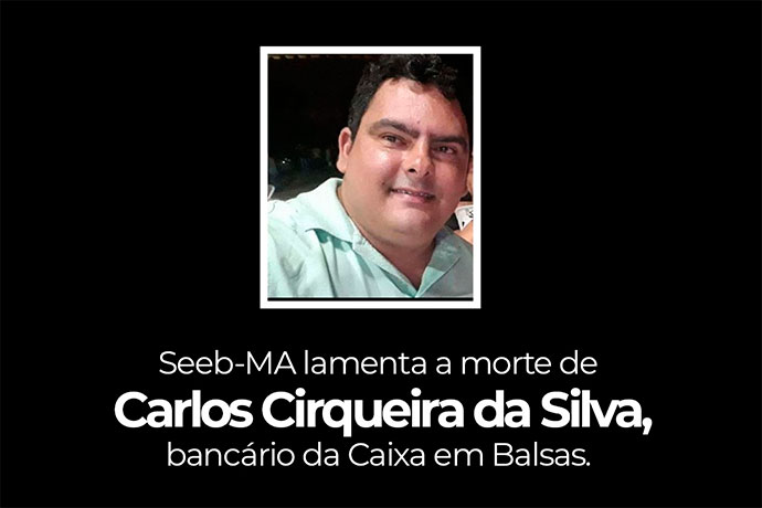 É com pesar que o SEEB-MA comunica o falecimento de Carlos Cirqueira da Silva, bancário da Caixa Econômica Federal, em Balsas (MA). Ele faleceu nesta sexta-feira (07/07), vítima de um acidente de trânsito, no referido município.
