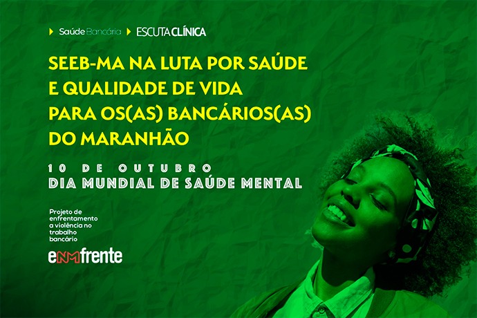 No Maranhão, o SEEB-MA tem promovido um trabalho ativo no apoio aos bancários e às bancárias adoecidos. O Projeto EMNFRENTE, resultado da parceria com a Doutoranda em Psicologia Social e do Trabalho, Solange Silva, busca pesquisar em âmbito estadual quais são os problemas mentais enfrentados pela categoria bancária.