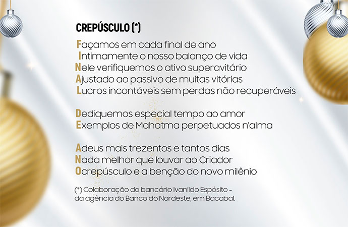 Colaboração do bancário aposentado Ivanildo Espósito - Banco do Nordeste, em Bacabal.
