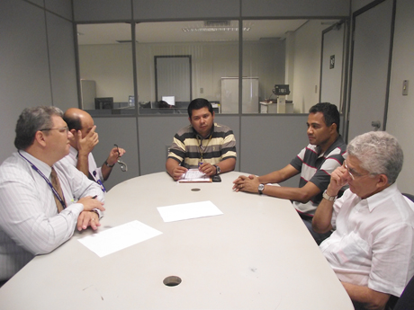 SÃO LUÍS (MA) - Representantes do Sindicato dos Bancários do Maranhão (SEEB-MA) e do Núcleo de Engenharia e Arquitetura do Banco do Brasil (BB) estiveram reunidos, na quinta-feira (25/08), em São Luís. Na ocasião, o Sindicato cobrou explicações do banco sobre as condições precárias de trabalho e atendimento em virtude da reforma na agência do BB do João Paulo.