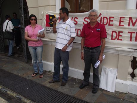 SÃO LUÍS – Nesta terça-feira (13), o Sindicato dos Bancários do Maranhão (SEEB-MA) fez uma manifestação em frente à agência do Banco Itaú, na Rua da Paz, Centro. Além de divulgar a campanha salarial 2011, o objetivo do ato foi protestar contra o posicionamento intransigente dos banqueiros, que vem negando todas as reivindicações da categoria nas negociações.