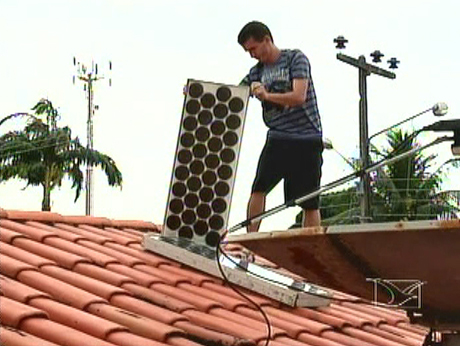 Ele instalou, em casa, um sistema que transforma energia solar em energia elétrica.