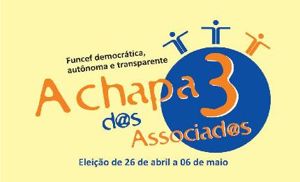 O Sindicato dos Bancários do Maranhão (SEBMA) apoia a Chapa 3 – A Chapa dos Associados – nas eleições para renovar os mandatos de diretores e conselheiros eleitos pelos associados, que acontecem de 26 de abril a 6 de maio. A Chapa é formada por funcionários da Caixa que acompanham a rotina da Funcef e conhecem de perto os anseios e insatisfações dos participantes e levanta a bandeira de que os associados dessa vez terão lugar garantindo na próxima gestão. Compõem a Chapa 3: Carlos Alberto Castilho (SP), Carlos Alberto Oliveira Lima (RJ), Dircel Alves (SP), Emanoel Souza(BA), Fernando Batista dos Santos (MG), Josias Galeno Santiago de Oliveira (PE), Léo Paim de Mesquita (SC), Paulo Roberto Carpenedo (RS) e Rita de Cássia santos Lima (ES). O SEEB/MA defende a Chapa 3 – A Chapa dos Associados – em virtude de seu projeto construído para realmente atender aos anseios dos associados. As propostas priorizam a transparência, autonomia e o comprometimento com o trabalhador chamando para o debate questões como a luta por uma política que garanta rentabilidade, segurança e liquidez adequada, dentre vários outros temas. O resultado do pleito será divulgado em 7 de maio e a posse dos eleitos está prevista para o dia 1º de junho. A Chapa 3 possui perfil no twitter – o endereço é: twitter.com/chapa3funcef e comunidades de apoio na página de relacionamentos Orkut (Chapa 3 Funcef). De 26 de abril a 6 de maio, por uma Funcef democrática, autônoma e transparente, vote Chapa 3 - A Chapa dos Associados. Para saber mais sobre a Chapa 3, acesse www.achapadosassociados.org.br.