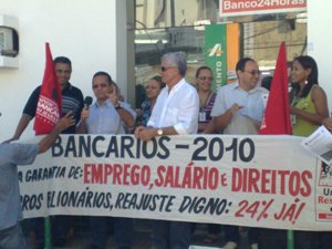Prosseguindo com a difusão de informações e reivindicações da Campanha Salarial 2010/2011, a direção do Sindicato realizou protesto em Caxias, na última sexta-feira(13). O evento configurou o lançamento da campanha salarial na regional.
