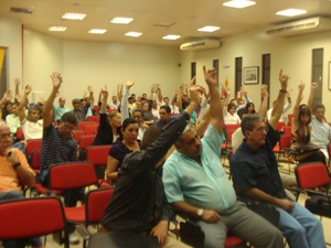 Em assembleia ontem à noite(17), os bancários do Maranhão deliberaram seguir o calendário nacional de greve por tempo indeterminado a partir do dia 29 de setembro. Antes, no dia 23 de setembro, às 18h30, no Sindicato, a categoria fará assembleia de avaliação das propostas dos bancos. Em caso de rejeição, o início da greve já tem data confirmada. A Fenaban se comprometeu em apresentar na próxima rodada de negociação, dia 22 de setembro, uma proposta global para a categoria. BB e CEF marcaram para o dia 23 de setembro a apresentação de propostas específicas aos bancários.