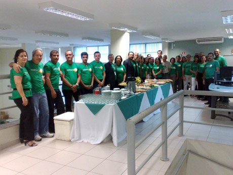 Hoje, dia 09 de julho de 2012, o Banco da Amazônia completa 70 anos de existência. Para comemorar a data, os bancários do BASA realizaram um café da manhã na agência da Praça Pedro II, no Centro de São Luís. O diretor do SEEB-MA, Raimundo Costa, participou do evento.