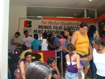 Apesar da lucratividade bilionária, banqueiros e Governo negaram todas as reivindicações dos trabalhadores e agora silenciam. A paralisação pressiona por negociação e novas propostas da Fenaban e do Governo Federal, responsável pelos Bancos públicos. No dia 11/08, a pauta de reivindicações foi entregue à Federação Nacional dos Bancos (Fenaban). Em cinco rodadas de negociações (de 24/08 a 22/09), os bancos rejeitaram TODAS as reivindicações da categoria sobre salário, emprego, saúde, condições de trabalho e segurança. Na rodada do dia 14/09, os bancos assumiram o compromisso de apresentar uma proposta completa na reunião seguinte, dia 22/09. Entretanto, o índice oferecido de apenas 4.29%, considerado vergonhoso pelos bancários de todo país, pois não repõe a inflação acumulada de 01/09/09 a 31/08/10, medida pelo DIEESE que ficou em 5.15%; muito menos considera as perdas salariais dos bancários, acumuladas desde 1994, que ultrapassam 23% nos bancos particulares e 80% nos públicos. O lucro dos bancos no primeiro semestre/2010 cresceu, em média, 32% em relação ao ano passado. Isto equivale dizer que, a cada três anos uma instituição financeira tem capital para comprar outra do mesmo porte. Dados do primeiro semestre de 2010 Banco Lucro crescimento rentabilidade Itaú Unibanco* R$ 6,399 bilhões 29,56% 24,2% BB R$ 5,131 bilhões 27,85% 28,7% Bradesco R$ 4,508 bilhões 12,13% 22,8% Santander R$ 2,02 bilhões 44,34% 17,4% CEF R$ 1,7 bilhão 44,15% 25,8% Safra R$ 512,2 milhões 13,14% 20,4% HSBC/Brasil R$ 423,2 milhões 70,84% 12,1% BNB R$ 110 milhões 10,87% BASA R$ 46,5 milhões 5,9% 4,9% Os prejuízos com a falta de atendimento à população são parte da luta dos trabalhadores para trazer benefícios aos clientes e usuários. Na pauta de reivindicação dos grevistas, mais contratação de bancários para atender melhor a população, o respeito à lei das filas e o fim das altas taxas e tarifas que engordam, e muito, o lucro dos bancos. Se a categoria não parar para protestar contra esse desrespeito aos trabalhadores e a população, os patrões continuarão ignorando as péssimas condições de trabalho dos bancários e o péssimo atendimento aos clientes e usuários. É preciso fortalecer essa luta para pressionar os banqueiros a apresentarem uma proposta decente aos trabalhadores, e, dessa forma, causar menos transtornos aos bancários e a população em geral. PASSEATA DOS BANCÁRIOS NESTA QUINTA-FEIRA (07/09). CONCENTRAÇÃO ÀS 15h30, NA PRAÇA JOÃO LISBOA.