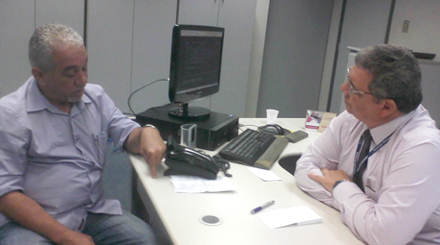 Em reunião realizada nesta quinta-feira (08/11), no Centro de Logística do Banco do Brasil (CSL/São Luís), os dirigentes do SEEB-MA, José Maria Nascimento e Targino Júnior, cobraram uma solução definitiva para o problema de refrigeração da agência BB Centro, na cidade de Imperatriz.
