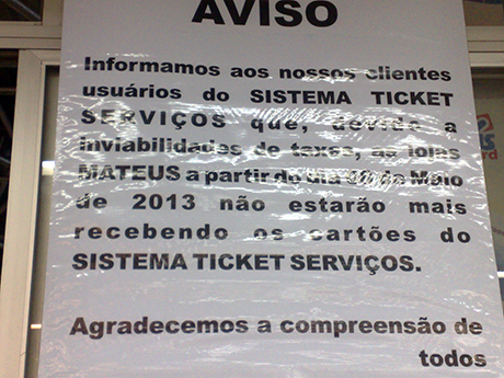 Para piorar a situação, o Mateus, principal rede de supermercados no Estado, já anunciou que deixará de atender a empresa Ticket a partir do dia 08 de maio, o que tem deixado os bancários preocupados.