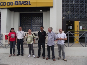 Na manhã desta terça-feira (15/02), o Sindicato dos bancários do Maranhão realizou em frente à Superintendência Estadual do Banco do Brasil, na Praça Pedro II em São Luís-MA, um ato público de repúdio à política de descomissionamento de gestores que não atingem as metas abusivas impostas pelo banco. Diferentemente da sua bicentenária história em nosso país, o Banco do Brasil agora segue os mesmos ditames dos bancos privados: lucros financeiros escorchantes e nenhum compromisso com o desenvolvimento do nosso Estado. Na esteira dessa lógica irresponsável, a Superintendência Estadual do BB degolou no último dia 10/02 (quinta-feira) seis gestores no Maranhão por não atingirem as metas exigidas pelo Banco. O BB, por ser público, não deveria se comportar como mero banco comercial. No Governo de Jackson Lago, para comprar a Folha de Pagamento do Estado, investiu dezenas de milhões de reais. Investiu outros tantos milhões na gestão de Tadeu Palácio para conseguir a Folha de São Luís. Mais tarde, sob a nova administração de Roseana Sarney e a de João Castelo nos governos estadual e municipal, o Banco teve de desembolsar outra quantidade enorme de Verba de Representação Negocial (VRN) para manter as folhas negociadas nas gestões anteriores. É fato que, para se reembolsar das vultosas quantias investidas nas transações com o Estado e municípios, o BB faz pressão insuportável para seus empregados atingirem metas absurdas de vendas de produtos. A política do medo é o modo covarde de exigir resultados inalcançáveis. Dentre os que atingem as metas, há quem adoeça e os que não atingem são descom issionados. Na Assembleia Legislativa do MA, o Deputado Bira do Pindaré também se manifestou a respeito da política do banco, defendeu assim as questões bancárias: “Uma instituição como o Banco do Brasil, que é um banco público, não pode se reduzir apenas a um competidor de mercado e o que está acontecendo na prática é isso. Estão explorando os funcionários, aterrorizando com metas absurdas. Para comprar uma folha de pagamento hoje há uma verdadeira guerra entre as instituições financeiras. E depois que vencem a guerra, querem explorar o sangue dos funcionários e da população empurrando bugigangas financeiras que quase nada acrescentam à vida da nossa população.” Por Sáride Maíta