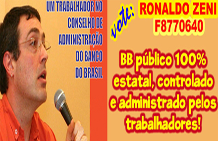 O candidato apoiado pelo Sindicato dos Bancários do Maranhão (SEEB-MA), Ronaldo Zeni, foi o segundo mais votado no primeiro turno das eleições para o Conselho de Administração do Banco do Brasil (Caref), que aconteceu entre os dias 03 e 07 de junho, com 2.776 votos. Em primeiro lugar ficou Rafael Vieira, que obteve 5.678 votos. Como nenhum dos candidatos obteve a maioria dos votos válidos, os dois mais votados disputarão o segundo turno, que será de 24 a 28 de junho.