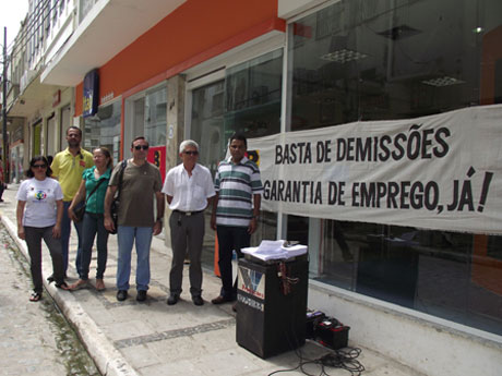 O Sindicato faz mais uma manifestação contra as demissões imotivadas de bancários ocorridas nos últimos dias no Itaú. Novo protesto ocorreu na manhã de hoje (13.04), desta vez na agência São Luís Maranhense na Rua Grande.