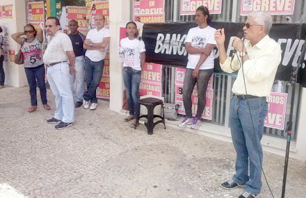 No 30º dia de greve os bancários do Banco da Amazônia realizaram ato público nesta sexta-feira (18/10), em frente à agência do BASA da Praça Pedro II, no Centro de São Luís.