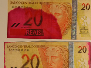 “Foi uma surpresa. Achávamos que os criminosos iam encontrar alguma forma de neutralizar (esse dispositivo de segurança), mas não que fosse tão rápido. As notas estão praticamente limpas. O pessoal dos bancos vai ter que pensar em outra solução porque essa parece que não está funcionando mais”, afirmou o delegado, durante uma entrevista coletiva no Deic. As cédulas que foram encontradas dentro de um filtro d'água vão para a perícia para saber que tipo de substância foi usada.