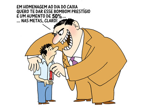 Mas o Itaú Unibanco foi ainda além em seu cinismo sem tamanho. Mandou, junto com o tal chocolate e o cartão, um texto de uma página dando dicas aos caixas sobre como proceder para aumentar ainda mais as vendas de serviços e produtos. O título do texto “O Segredo do Caixa Imbatível” talvez resuma toda a cara de pau do banco, que se aproveitou de uma data comemorativa para dar seu recado, mostrando com isto que seu único e verdadeiro interesse é sugar ao máximo a saúde e a vida dos bancários. O documento ensina ao funcionário como agir – “com muito brilho nos olhos” e “empatia” – para convencer o cliente a comprar os produtos, e, ao mesmo tempo, atender no menor tempo possível, sem cometer qualquer erro nas operações bancárias. O bancário é tratado como máquina da qual se exige o máximo, e quando dá defeito, o banco o joga fora.