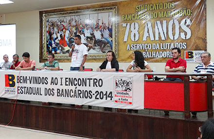 O SEEB-MA realizou no sábado (25/01), em São Luís, o I Encontro Estadual dos Bancários 2014. Na ocasião, a categoria discutiu os desafios que a sociedade brasileira vai enfrentar neste ano de grandes eventos, como a Copa do Mundo e as eleições.