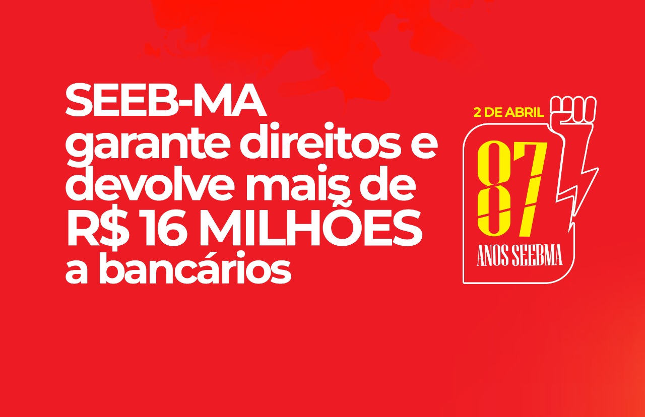O SEEB-MA completa, neste sábado (02/04), 87 anos de lutas e de conquistas em favor dos bancários e das bancárias maranhenses, sobretudo, no âmbito jurídico, com a devolução de valores vultosos para a categoria e a manutenção de direitos que haviam sido usurpados pelos bancos injustamente e ao arrepio da lei.