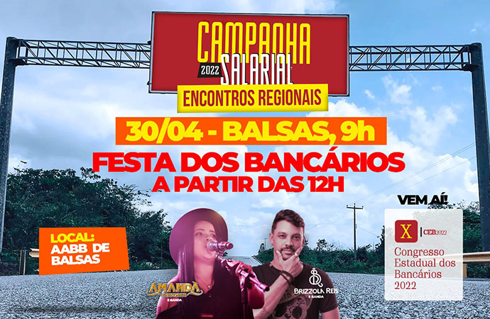 Vem aí a Confraternização dos Bancários da Regional Balsas, que será realizada no dia 30 de abril (sábado), na AABB, em Balsas.