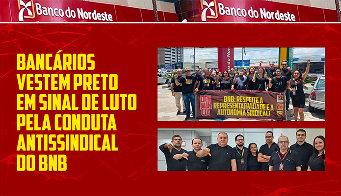 Nesta quinta-feira (18/09), os(as) bancários(as) do Banco do Nordeste no Maranhão vestiram preto em sinal de luto e protesto contra a prática antissindical da instituição, que ameaça a autonomia do SEEB-MA no Estado.